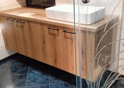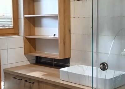Izdelamo kopalniško pohištvo po meri in vaši zamisli. Razne omarice za pod umivalnike, viseče kopalniške omarice, omarice za nad pralne stroje ali tudi pod njih. Poskrbimo za omarice z ogledalom in lučkami za ličenje . . . V sodobnih stilih ali rustikalno, masivno pohištvo za kopalnice. Kakšno kopalniško pohištvo po meri ste si zamislili pa vi? Sporočite nam . . .