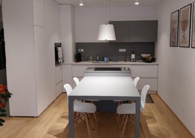 Izdelamo kuhinje po vaših zamislih, željah in vaših merah – majhne kuhinje ali velike kuhinje. Klasične, moderne ali pa rustikalne, masivne, naravne kuhinje. Poskrbimo da se bo pohištvo prilegalo vgradnji vaše nove – morda najsodobnejše bele tehnike, ali tudi vaših starih vgradnih gospodinjskih aparatov. Kakšno kuhinjo ste si pa zamislili vi? Sporočite nam . . .