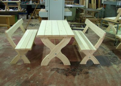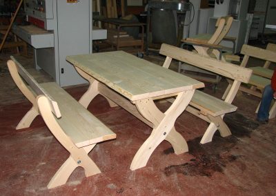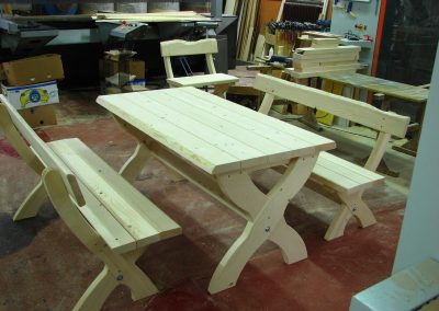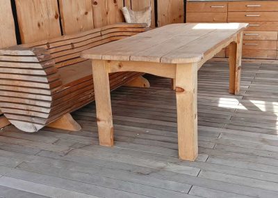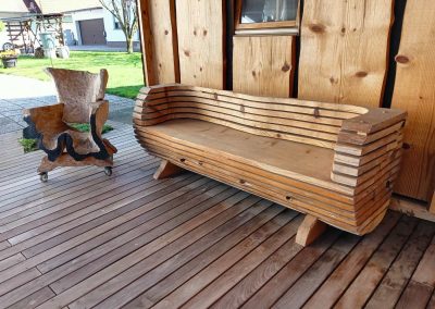 in tudi zunanje masivno pohištvo – kot so masivne zunanje mize, klopi, pa tudi brunarice, nadstreške, lesene pergole in letne kuhinje z masivnega lesa.